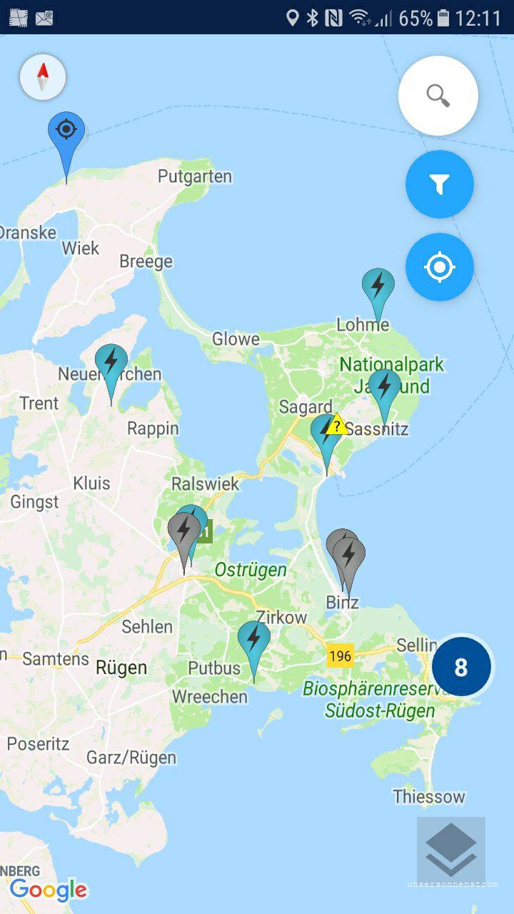Wir haben und wollen nicht die Wahl zwischen Verbrenner, Hybrid oder Elektroauto. Wir fahren einfach Elektroauto. Vor drei Jahren hätte sich die Anfahrt mit unserem eGolf, in uns angemessener Zeit (also innerhalb eines Tages), noch schwierig gestaltet. Da war zwischen Neuruppin und Stralsund kein Schnellladen mit CCS möglich. Das ist Geschichte. Im Gegenteil, die Infrastruktur im Norden funktionierte besser als vom Vogtland nach Berlin. Da auf der Autobahn die Ladestationen von den Energieriesen übernommen wurden, sind diese gewohnheitsmäßig nicht zuverlässig zu benutzen. Es wird nicht geschafft die Software am Laufen zu halten. Somit fuhren wir nach Köckern von der Autobahn und benutzten die Landstraße um nach Ziesar, Neuruppin und Neustrelitz zu kommen. In Neustrelitz verbrachten wir zu Mittag eine interssante Ladeweile http://www.leea-mv.de Sehr sehenswert. In Stralsund kurz vorm Rügendamm nutzten wir die letzte Schnellladung um dann auf die „Grüne Insel“ Rügen zu fahren. Konzepte, die man liest lassen ja viel versprechen, aber vor Ort sieht es anders aus: