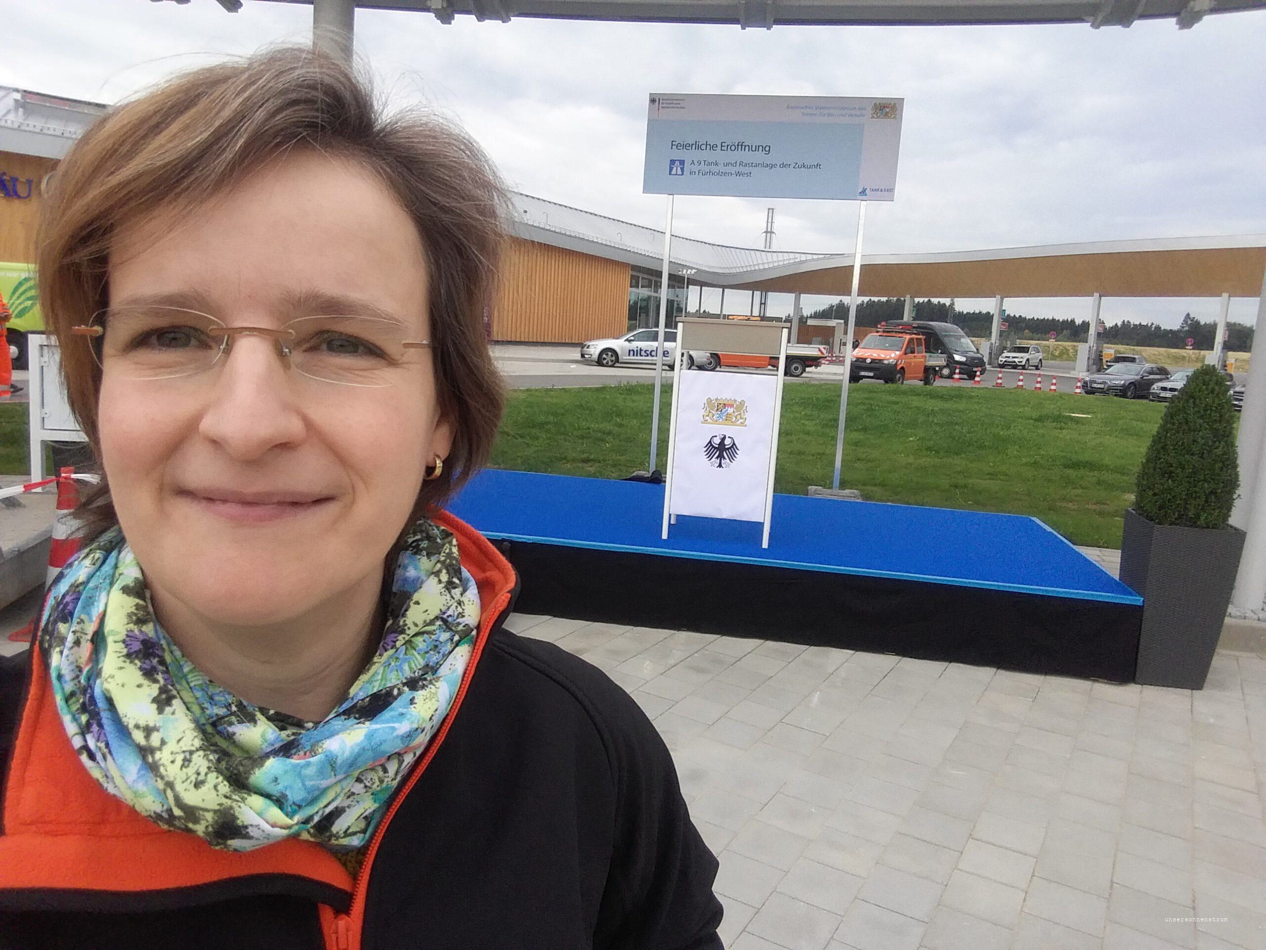 Am 22. September fuhren wir ganz unspektakulär zur eRUDA nach Fürstenfeldbruck. Diese 327 km fährt man mittlerweile völlig entspannt. Das Einzige, was einen aufregen könnte ist, dass man sich nicht mehr entscheiden kann, an welchem Schnelllader man denn nun anhält und seine Ladeweile verbringt. Etwas aufregendes gab es ja nun doch auf der Hinfahrt. Wir hielten an der neu entstandenen Rastanlage Fürholzen West. Diese wird von Tank&Rast betrieben und hat uns als Elektromobilisten mit einem neuen Ladeerlebnis belohnt. Genaueres hier im Link. Noch bevor an diesem Nachmittag Herr Dobrindt dieses vollbrachte Werk eröffnete, wurden wir durch die Absperrung gelassen und durften laden.