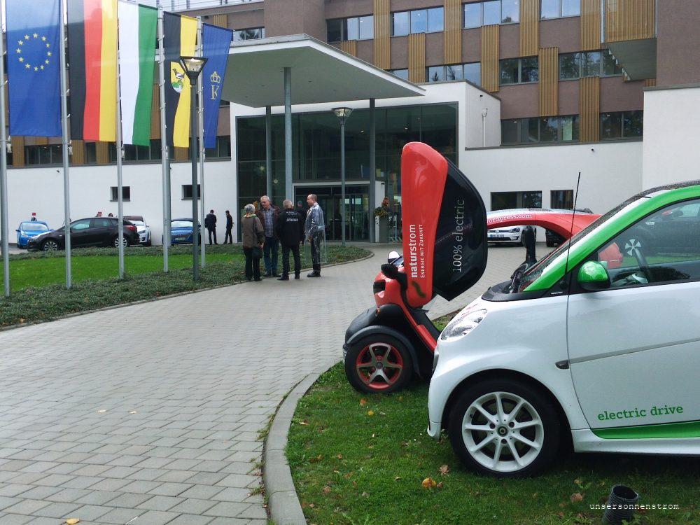 Alle guten Dinge sind ja bekanntlich drei. Also unser eigenes Treffen. Von langer Hand bereiteten wir seit Ende Mai unser 5. E-Mobil-Treffen vor. Durch einen Besuch im Hotel König Albert in Bad Elster um die neu errichteten Destination-Charger zu begutachten, blieb uns der Gedanke immer im Kopf, dort ein Treffen zu veranstalten. Die Orga klappte zusammen mit unserem Freund Ralf wieder sehr gut. Einige meldeten sich an zum Treffen um das tolle Flair vom Hotel zu geniesen. Mit 28 Teilnehmern und 24 Fahrzeugen stellten wir uns Interessierten und deren Fragen, die auf den Artikel in der Freien Presse vorbei kamen. Wir vertrauten auch 1, 2, 3 Autohäusern eine kompetente Beratung vor Ort zu, und ich denke, dass die Herren Verkäufer mal einen Eindruck erhielten, wie wir Elektromobilisten so ticken und wie unwissend doch ihre, vielleicht zukünftige, Kundschaft noch ist. Neben einer kleinen Rundfahrt durch Bad Elster, den Workshops und Vorträgen stellte die Fa. Number 1 energy ihre Promotioncharger vor, die auf dem Parkplatz des POB neben anderen Teilnehmern ihre Fahrzeuge ausstellten und laden durften. Dafür danken wir Herrn Schwui und seinen Mitarbeitern, die uns dies ermöglichten. Ein Pendelverkehr zwischen Hotel und Parkplatz ermöglichte Interessenten unsere Fahrzeuge zu fahren und erste Eindrücke mit solch einem Elektroauto zu erleben. Das Essen und das Willkommen vom Hotel rundete das ganze Erlebnis ab. Wir danken somit auch allen Mitarbeitern vom Hotel König Albert. Dieser 7. Oktober wird uns in guter Erinnerung bleiben und wir werden an einer Fortsetzung arbeiten. Ich denke, alle kamen auf ihre Kosten, sei es einer von unseren emobilen Freunden oder noch nicht Nutzer. An alle geht ein Dank von uns, Ralf, Frank und mir.