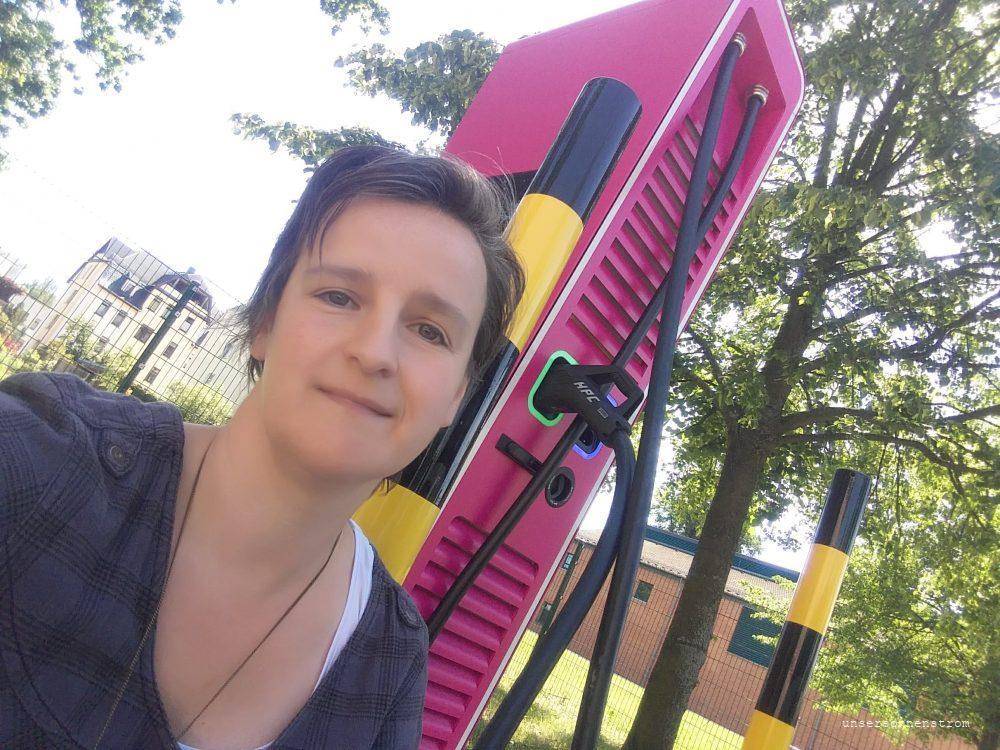 Eine unspektakuläre Fahrt nach Leipzig haben wir gemacht, wie so viele Leute. Na gut, wir sind mal durch Limbach- Oberfrona gefahren und haben dort einen neu errichteten Schnelllader getestet. Der könnte mit 175 kWh laden, wenn das entsprechende Auto dranhängt. Aber mit 42 kWh ging’s auch recht zügig. Wann kommt man schon mal nach Limbach-Oberfrohna, ich nicht so oft.