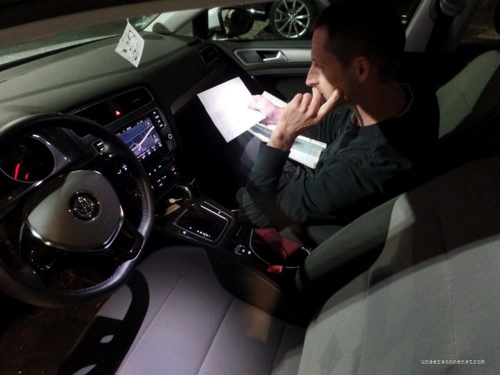 Es folgte ein Abend mit vielen Themen, die uns alle interessierten. Sei es über die Familie, Energie, Ernährung… Nach einiger Zeit fiel uns auf, dass wir schon 20 Stunden wach waren. Aber durch das entschleunigte Fahren mit Elektroauto ist man nicht so angespannt und regeneriert öfter in den Ladepausen.