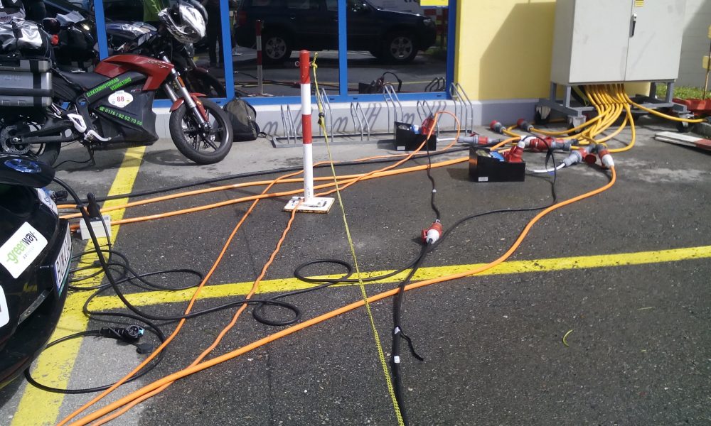 Heute wurden 4 Pässe von uns Elektromobilisten überquert. Morgens fuhren wir von Savognin nach St. Moritz. Der erste Pass der Rundfahrt war der Julierpass 2284m. Dort in der Innenstadt war das Schulevent, bei dem Frank unser Auto und unsere energetischen Beweggründe vorstellte. Was wir auf diesen Events für Punkte bekommen haben, will ich irgendwie gar nicht wissen. In einer Minute alles auf den Punkt zu bringen, war nicht leicht. Dann den kleinen Weg durch die Stadt. Auf dem Platz, wo wir Laden sollten, gab es gleich mal Stau. Die Sicherungen wurden höchst strapaziert.