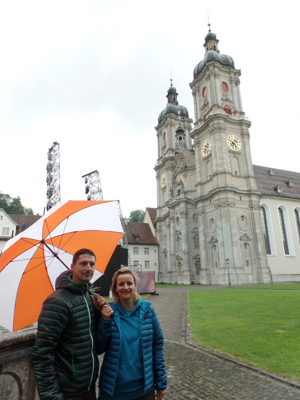 Wir luden beim Event die verfahrene Energie wieder auf und dann ging es auch schon weiter. Die Zieleinfahrt in St. Gallen wartete auf uns. Diese letzten 49km waren irgendwie die anstrengensten der gesamten Wave. Wir waren so müde, dass es uns echt schwer fiel sich zu konzentrieren. Aber wir wollten es nun endlich hinter uns bringen. Noch etwas in der Stadt herumgekurvt um die richtige Einfahrt zu finden und dann standen wir wieder unter dem, uns seit 7 Tagen, bekannten Lufttor in St. Gallen.