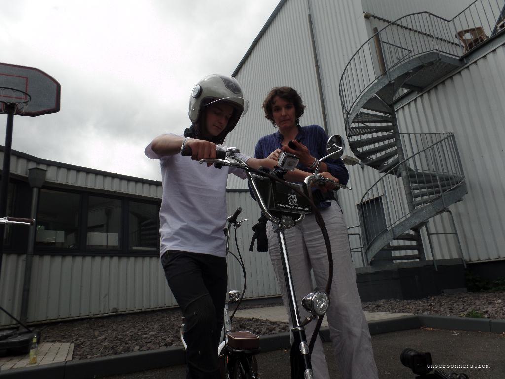 Nach unserer Nacht bei Normann ging es direkt nach Erkelenz an die Schule. Die Schüler haben über 900 Klimaversprechen zusammen bekommen und wir waren jetzt dran uns vorzustellen. Frank übernimmt die Schulevents und als wir mit etwas Speed vom Schulhof fuhren, merkten wir, es war gut.