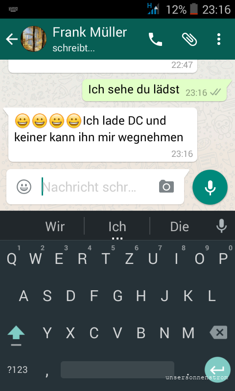 Nach der Veranstaltung fuhren wir zur Jugendherberge am Rheinufer. Alle sollten nach dem Essen und Briefing das Auto auf einen anderen Ladeplatz fahren, aber wir wollten noch die ansässigen CCS Ladesäulen nutzen. Frank machte sich auf den Weg. Da wir wussten, dass schon manche Teams dorthin unterwegs waren, versuchte er den anderen. Aber leider nix. So hieß es wieder anstehen und Geduld haben. Als er endlich dran war, diese WhatsApp: