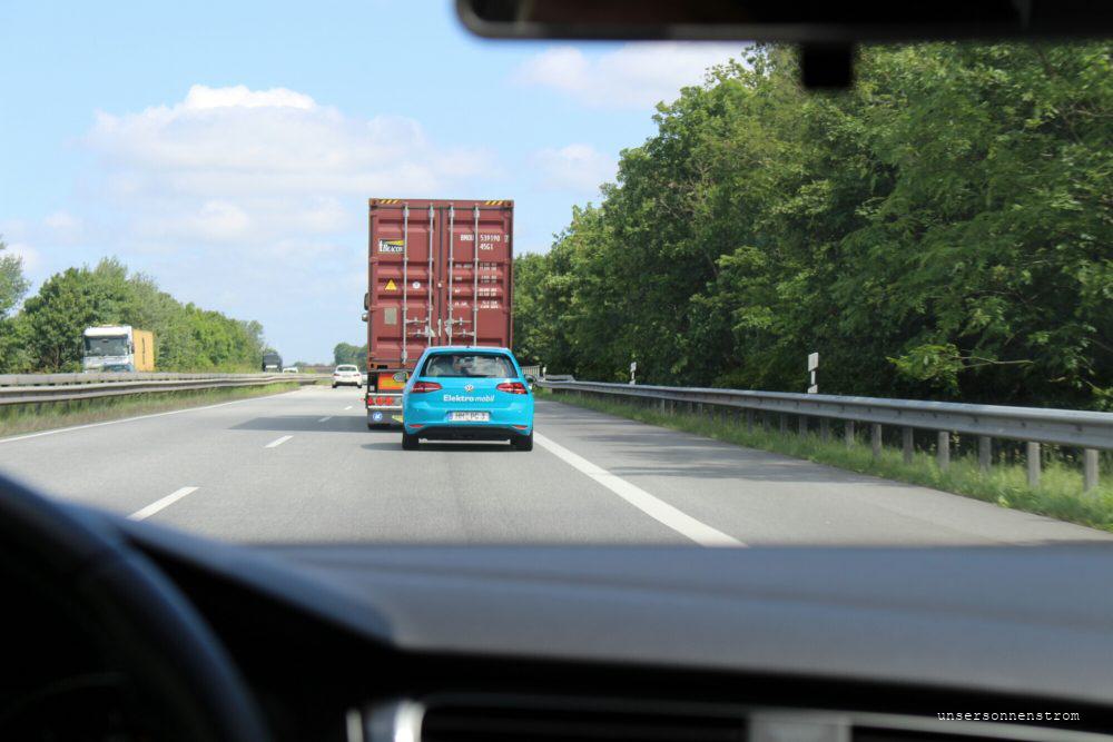 Wie es sich herausstellte, wollte er auch dort laden. Das beunruhigte dann aber doch die Mitarbeiter des Autohauses uns es wurde etwas kritisch nachgefragt, wieviele denn da jetzt noch kommen. Aber unser Weg war frei, mit dreiviertel Akku ging es weiter nach Bremerhaven.