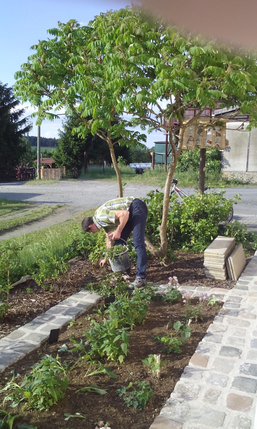 Unkraut im Garten zupfen