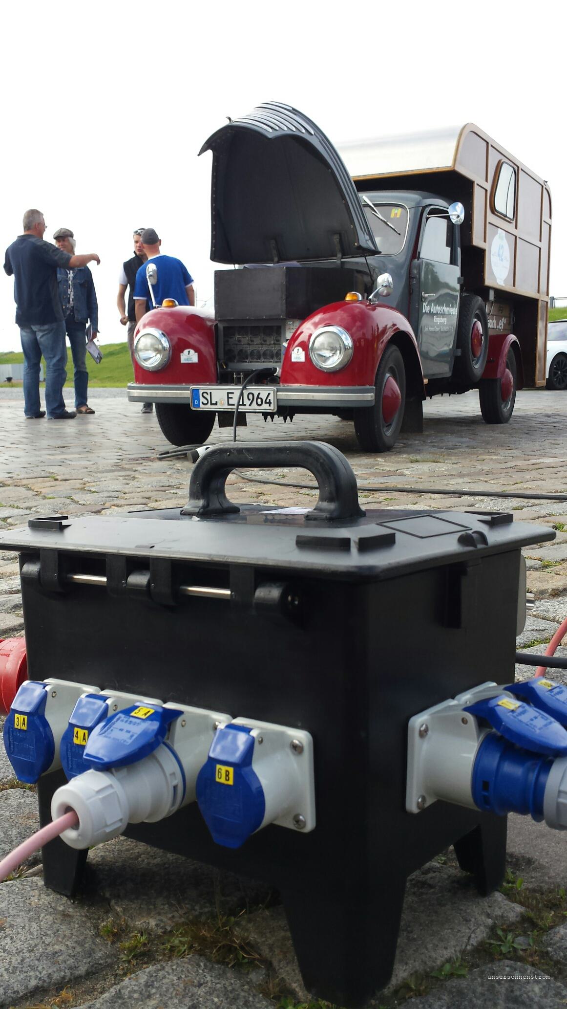 Von Louis Palmer wurden wir unter leider viel zu wenig Publikum verabschiedet. Wir erhielten am Abend zuvor ja die Anweisungen, wie wir in Bremerhaven durch die Fußgängerzone eine Sternfahrt absolvieren sollen. Einem Stern ähnelte unsere Fahrt durch die Innenstadt wohl eher. Wie wir im Nachhinein bei anderen Teilnehmern erfuhren, waren die genauso Ahnungslos.