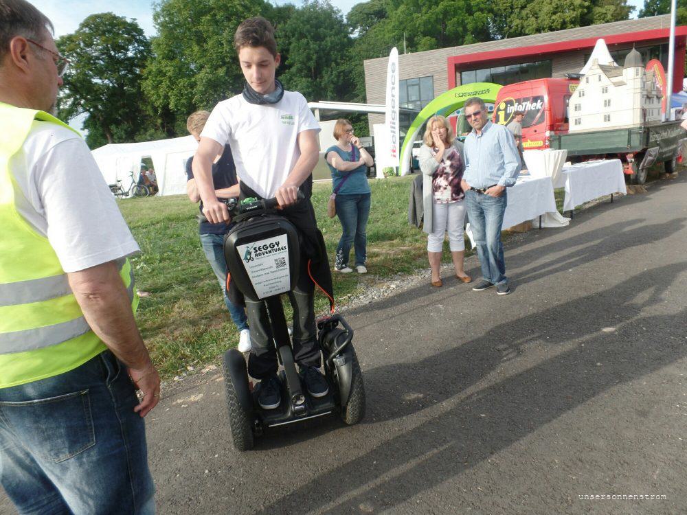 Entspannt fuhren wir weiter nach Dörentrup. Da wir hier Zeit hatten passte der blaue Stecker wieder gut für uns. Hier gab es gleich mal eine Challenge: Vor dem Aufladen mussten wir einen riesigen Gummiball auf, im Vergleich, minikleine, Kegel schießen. OK 4 Punkte sind besser als gar nix. Auch hier wurden wir köstlich bewirtet. Fritz fuhr mit dem Segway, Mama mit den Twizy, für alle war etwas dabei.